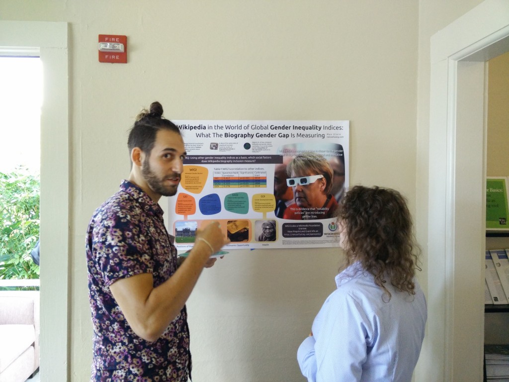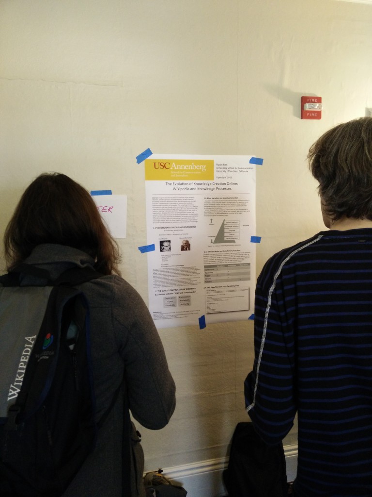OpenSym is a conference with both the ability and the guts to experiment. This time, we had a joint welcome reception with the Wiki Ed Foundation. The welcome reception is also the primary place to show posters and demos. We were curious as to whether the location, a house in the Presidio, would work, and it did so marvellously. The more cozy atmosphere of a house (than a dreary conference room) got people talking much more easily. Thank you, Wiki Ed Foundation, for making this happen!